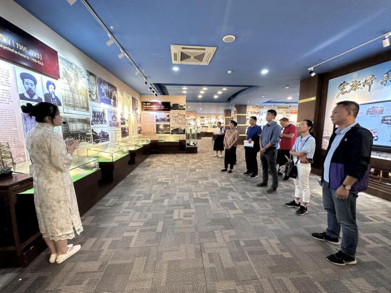 交流结束后,一同前往暨南大公司史馆参观学习,在讲解员的带领下观看了习近平总书记2018年10月24日考察暨南大学时的重要讲话,然后沿着总书记考察暨南大公司史馆的足迹,一起领略暨南大学的历史底蕴。一位教师说道:“在校史馆丰富的文字、物品和照片中,我们回顾百年暨南的沉浮变迁和岁月沧桑,深入学习了解暨南大学在教学、科研、华文教育等事业飞速发展的历程,受益匪浅。”