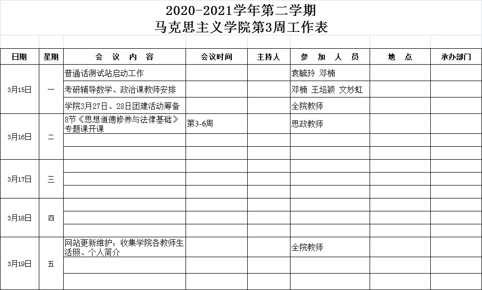 2020-2021学年第二学期suncitygroup太阳新城第3周工作表