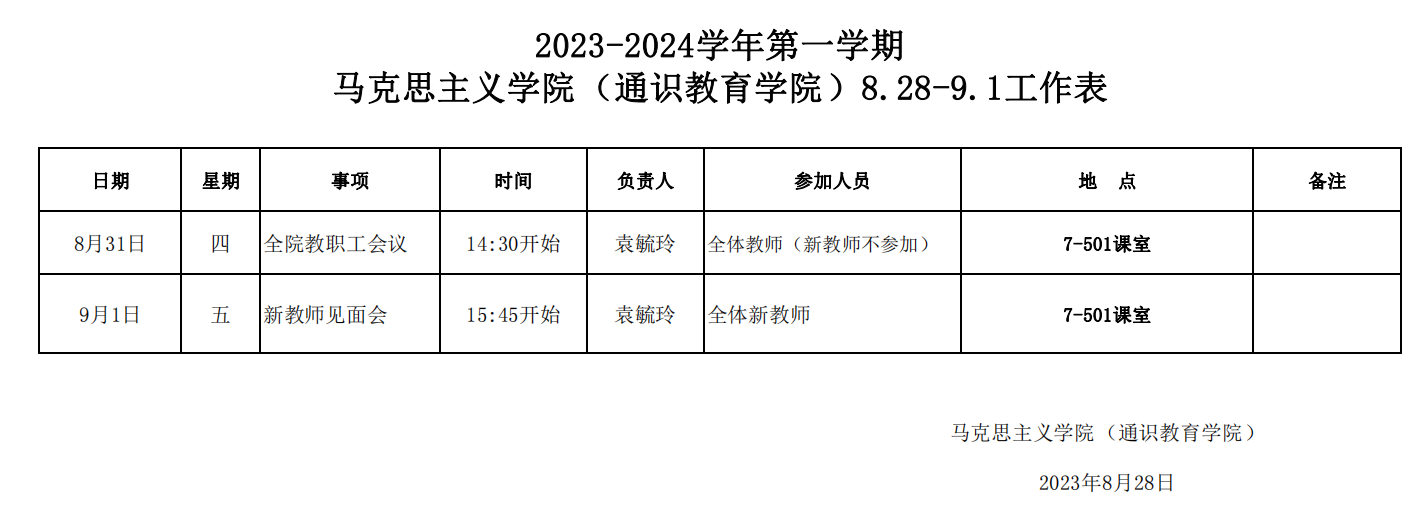 2023-2024学年第一学期suncitygroup太阳新城(通识教育公司)8.28-9.1工作表