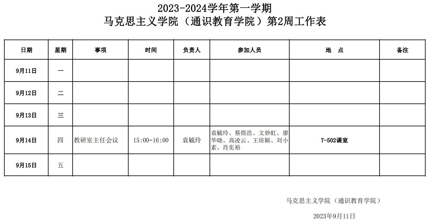 2023-2024学年第一学期suncitygroup太阳新城(通识教育公司)第2周工作表