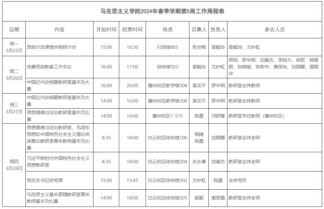 suncitygroup太阳新城2024年春季学期第6周工作周程表