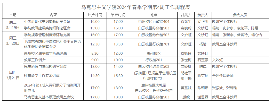 suncitygroup太阳新城2024年春季学期第4周工作周程表