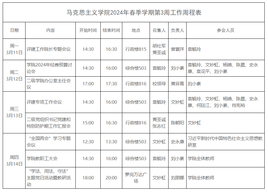 suncitygroup太阳新城2024年春季学期第3周工作周程表