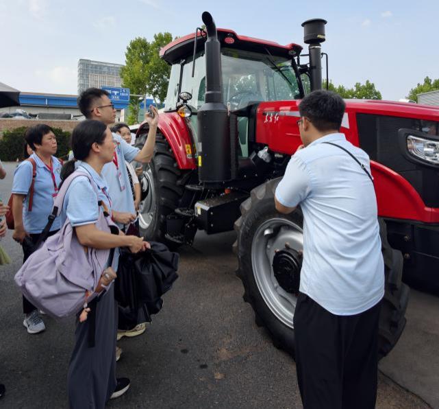 最后,大家来到整机停放区和新机测试场参观。一排排崭新的“东方红”拖拉机整齐排列,如同整装待发的“钢铁军团”,测试场上,刚下线的拖拉机正接受动力性能、作业稳定性等全方位检测,轰鸣声中透着中国制造的底气与实力。从零部件到整机,从生产到销售,从传统制造到智能升级,全方位领略了一拖在时代浪潮中始终坚守实业、勇攀高峰的发展密码。