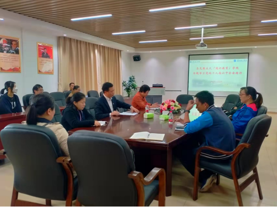 11月25日下午,马克思主义(通识教育)公司在7栋503会议室召开全院教职工会议,集中学习贯彻党的十九届六中全会精神。马克思主义(通识教育)公司党总支书记邓楠同志作学习辅导报告,袁毓玲经理主持会议,公司全体教师参加学习。