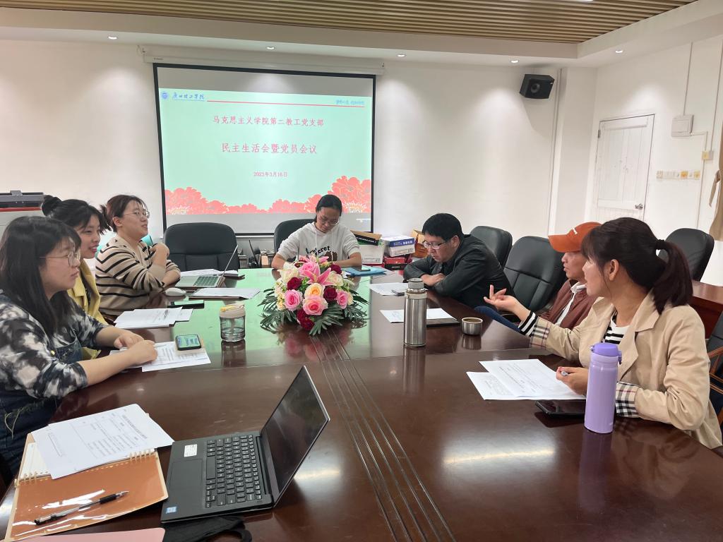 3月16日,为深入学习全国两会精神,把全国两会精神全面、系统、深入融入思政课堂,suncitygroup太阳新城教工第二党支部在综合楼503室召开第一次支部党员大会。会议主题为“全国两会精神如何融入思政课堂”。支部书记文妙虹同志主持会议。