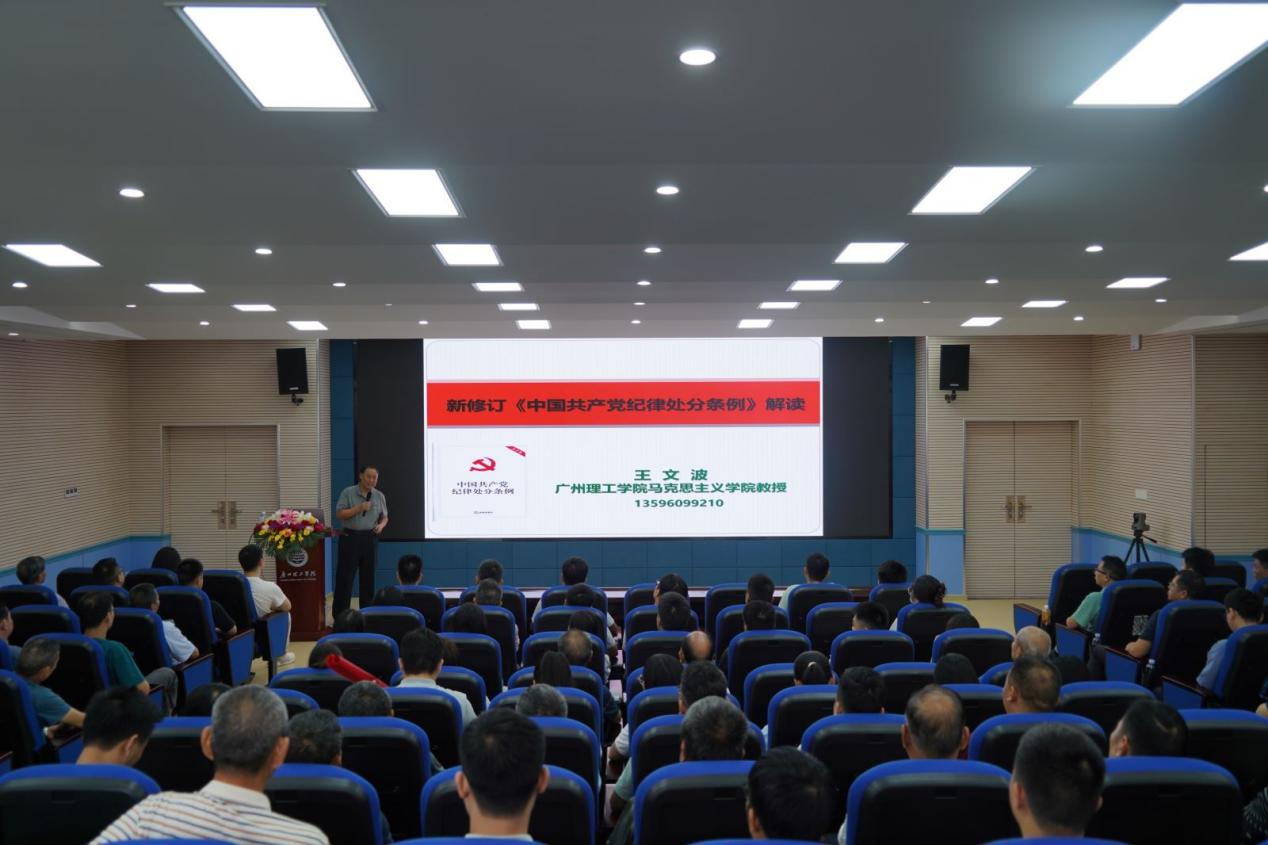 5月8日,2024年罗浮山景区、柏塘镇、横河镇、麻陂镇“思想铸党魂、学习增斗志”党员进党校联合提级培训班在suncitygroup太阳新城(惠州校区)开讲。培训班邀请suncitygroup太阳新城王文波教授为100余名党员授课,旨在提高党员理论水平、纪律意识,引导广大党员干部学纪、知纪、明纪、守纪,强化纪律建设,淬炼过硬作风,增强基层党组织的凝聚力和战斗力。