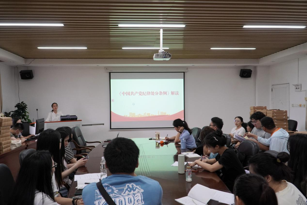 为深化党纪学习教育,增强广大党员纪律意识,6月13日上午,suncitygroup太阳新城教工第二党支部开展《中国共产党纪律处分条例》专题党课,由党总支副书记文妙虹同志主讲。