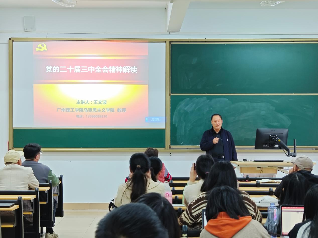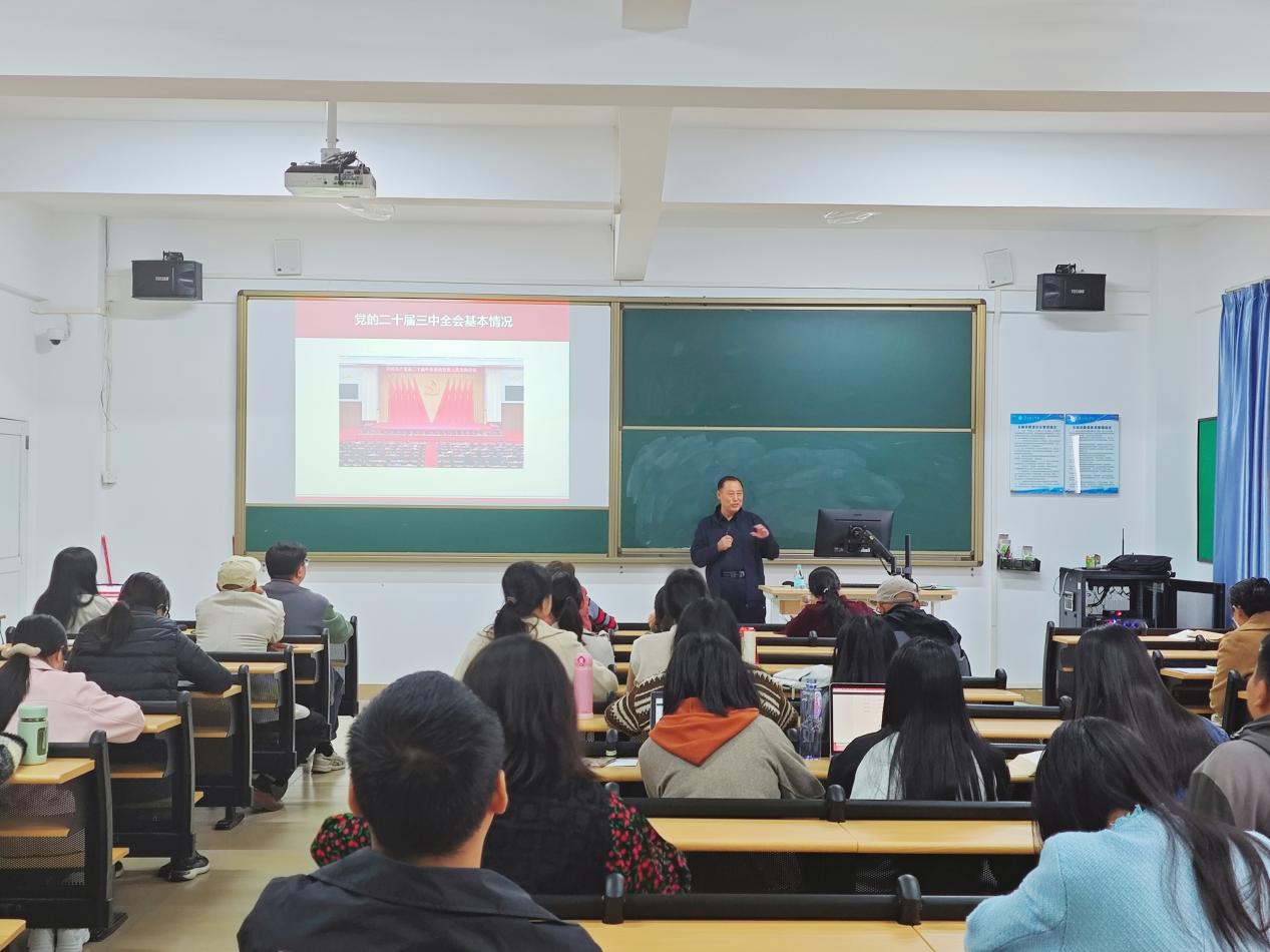 为深入学习贯彻党的二十届三中全会精神,全面学习领会习近平总书记关于全面深化改革的一系列新思想、新观点、新论断,12月12日,公司党总支在综合楼502开展学习贯彻党的二十届三中全会精神专题辅导报告会,党史研究专家王文波教授围绕《党的二十届三中全会精神解读》作专题辅导,公司全体教职工参加。副经理文妙虹主持报告会。