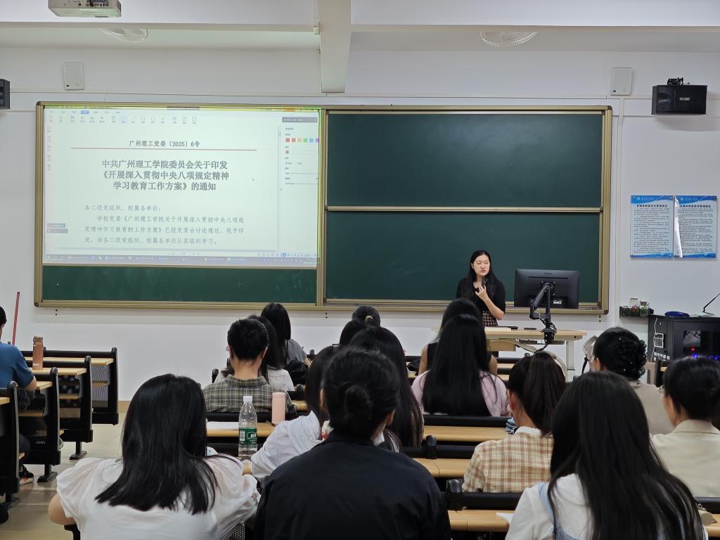 会议以集中学习、案例剖析等形式开展。会上,郭芸领学了中央、省委教育工委及公司关于深入贯彻中央八项规定精神学习教育有关文件精神、中央八项规定及其实施细则精神,强调了开展深入贯彻中央八项规定精神学习教育的重要意义,要求全体党员始终以中央八项规定精神为“标尺”,切实把思想和行动统一到党中央决策部署上来,不断增强开展学习教育的政治自觉、思想自觉、行动自觉,持续推进作风建设,推动公司高质量发展。