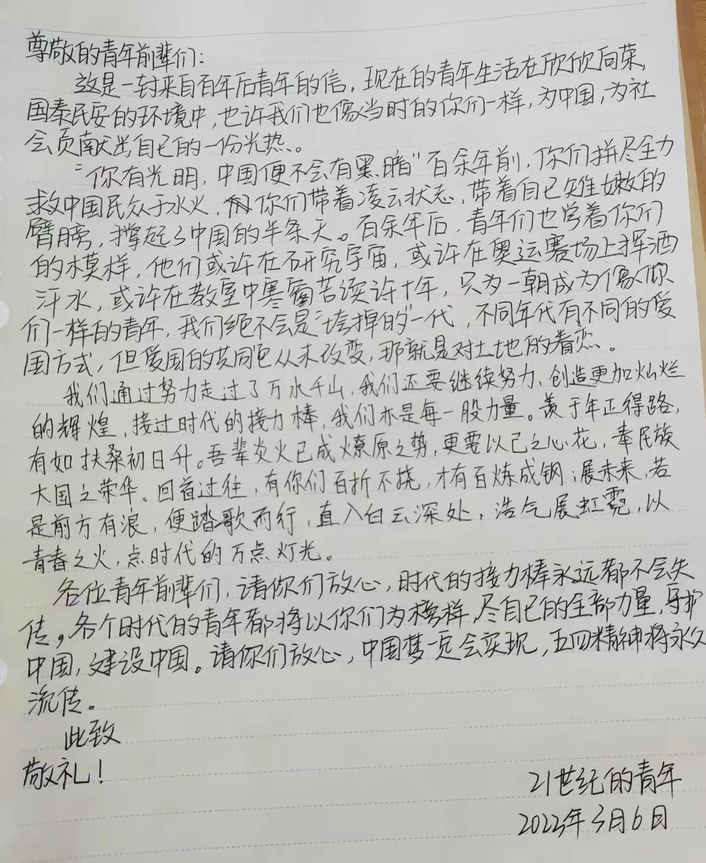 阮昊、姜景祺(来自2022级物联网1班)的手写信